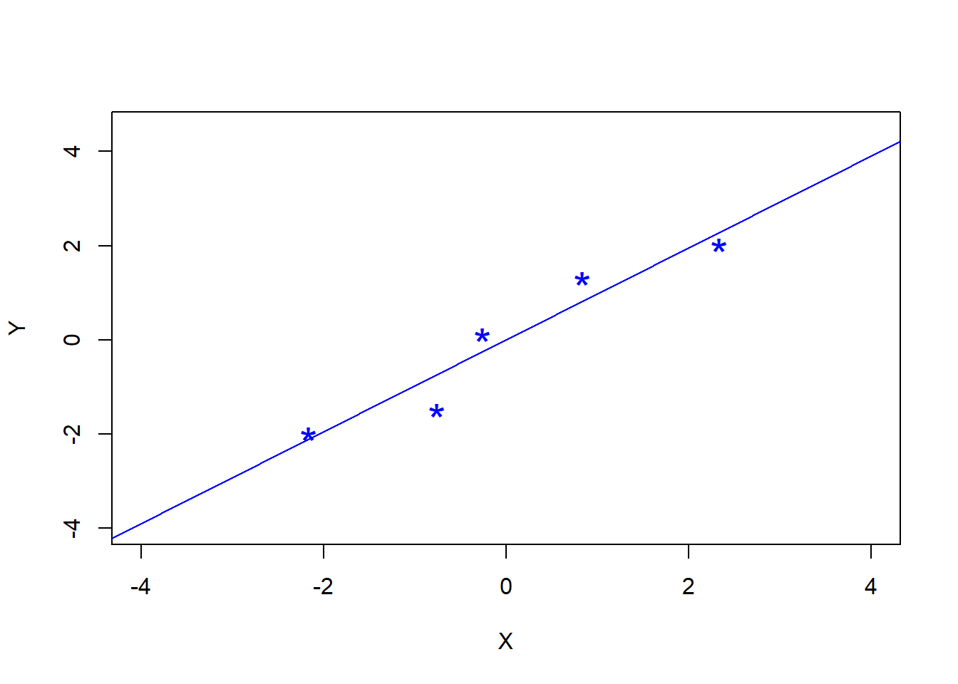For instance, the blue line below appears to represent well the tendency that exist between variables Y and X. The goal of this chapter is to use a mathematical procedure (linear regression) that allows you to identify that line.