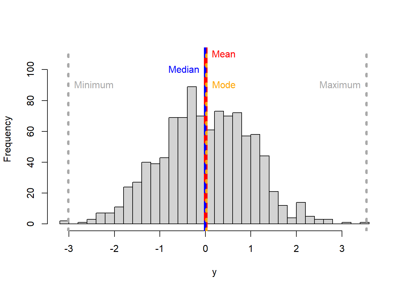 y <- rnorm(1000) # the function rnorm allows you to create a random set of numbers from a normal distribution